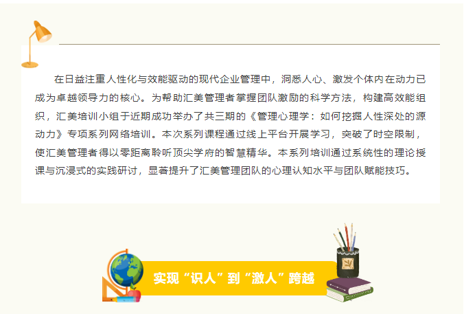 汇美成功举办《管理心理学:挖掘人性深处的源动力》系列培训,助力团队深挖潜能