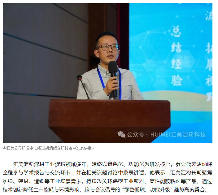 汇美参加中国淀粉工业协会变性淀粉分会第十八次变性淀粉行业学术报告、经验交流会 深耕工业淀粉领域创新赋能升级