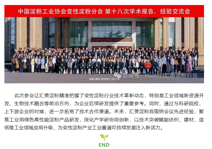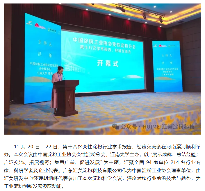汇美参加中国淀粉工业协会变性淀粉分会第十八次变性淀粉行业学术报告、经验交流会 深耕工业淀粉领域创新赋能升级